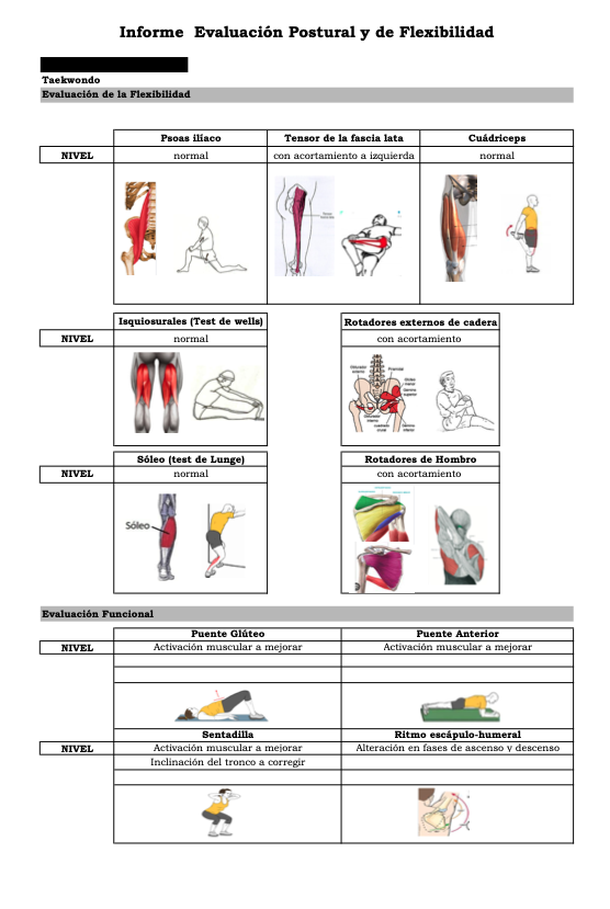 Esto nos permite conocer los niveles de movilidad articular y de elongación muscular, haciendo posible realizar indicaciones acordes con el nivel actual observado.