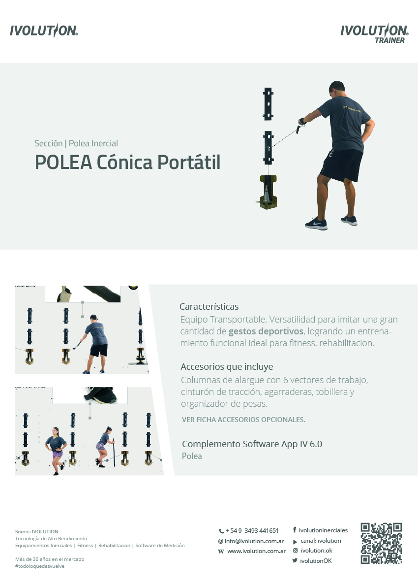 A diferencia de las poleas inerciales planas (como la YoYo), las cónicas permiten una variabilidad continua en la intensidad y el tipo de contracción, con aplicaciones específicas en el desarrollo de fuerza multidireccional, estabilización y readaptación funcional.